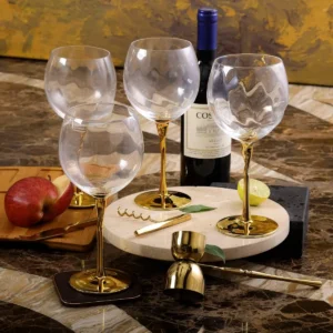 Design: Clear glass with a stylish gold-accented stem.