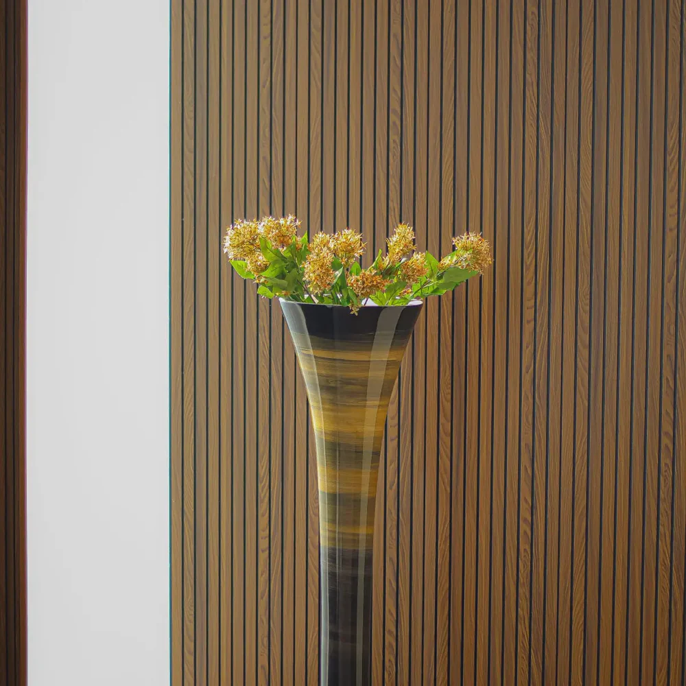 Its smooth wooden texture, intricate detailing, and rich finish make it ideal for styling with tall artificial flowers, dried branches, pampas grass, or decorative stems. The sturdy build ensures durability, while its elegant silhouette enhances both modern and traditional interiors.