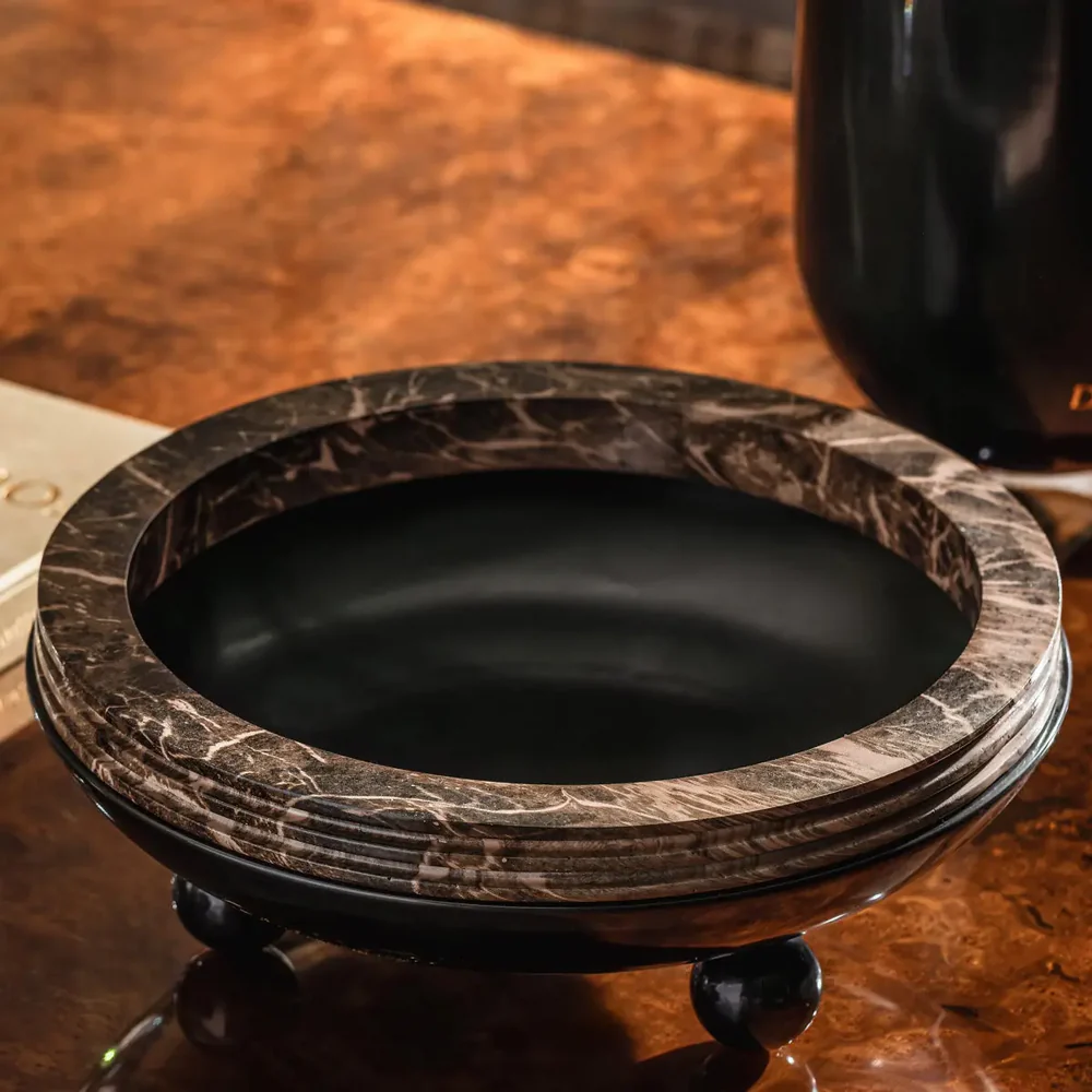 Crafted with precision, the vase’s solid marble structure offers stability and weight, while the brass accents give it a graceful, sculptural character. Whether you place it with fresh blooms, preserved botanicals, or simply as a standalone art object, this luxury flower vase adds timeless sophistication to console tables, centre tables, or shelves. Its neutral marble tones effortlessly complement contemporary, minimalist, and classic interiors.