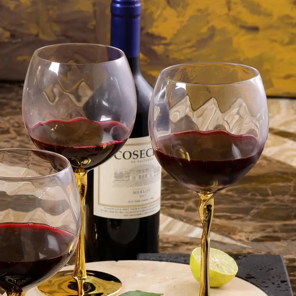 Design: Clear glass with a stylish gold-accented stem.