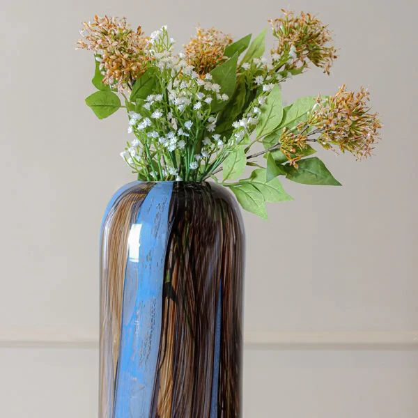 The Lagoon Swirl Flower Vase is a beautifully crafted décor piece designed to bring elegance, color, and artistic charm into any living space. Featuring a stunning swirl pattern inspired by natural water flows, this flower vase blends shades of blue and green to create a soothing and luxurious aesthetic. Its premium glass construction, smooth finish, and contemporary shape make it an ideal choice for homeowners who love stylish yet simple décor.